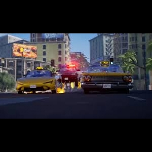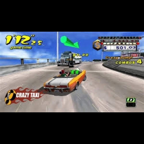 Hey hey, come on over and have some fun with Crrrrrazy Taxi! Barrel through traffic packed streets, hurdle off parking garages, and Crazy Combo your way to Crazy Money in a wild frantic race to scare up the most fares. In Crazy Taxi, time is money, and only the Craziest Cabbies come out victorious.