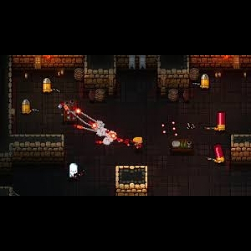 The Gungeon: Enter the Gungeon – a constantly evolving bullet hell fortress that elegantly blends meticulously hand-designed rooms within a procedurally-generated labyrinth bent on destroying all that enter its walls. But beware – the Gungeon responds to even the most modest victory against its sentries and traps by raising the stakes and the challenges found within!